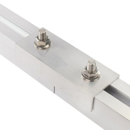 Conectorii de 120 mm sunt utilizați pentru îmbinarea profilelor de aluminiu, asigurând o fixare stabilă și sigură. Realizați din aluminiu rezistent, aceștia sunt concepuți special pentru montarea modulelor fotovoltaice pe șine de 40x40 mm.